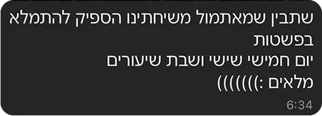 יום בשבוע | 00/00/00 | בשעה 00:00